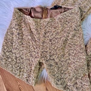 Betsey Johnson RARE 1990s Gold Lace Stretch Flare Pants