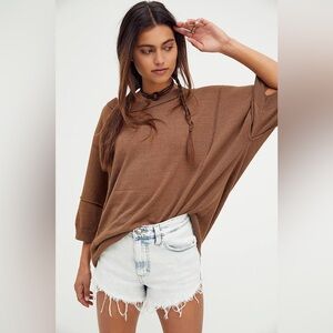 🕐 NWT | Free People | WFH Short Sleeve Sweater Tee | Mushroom | L