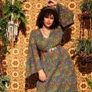 The Hippie Shake SOLD OUT Green Paisley Lady Of The Canyon Maxi Dress, Size US 12 / UK 16, excellent gently pre-owned condition!