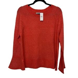 NWT LOFT Crew Neck Bell Sleeve Orange Red Sweater Sz. MEDIUM