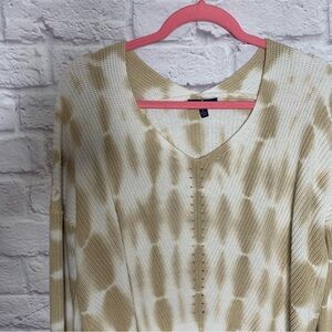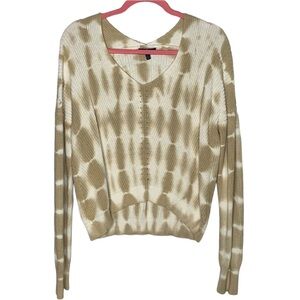 Freshman Tan And Ivory Tie-Dye V-Neck Knit Sweater