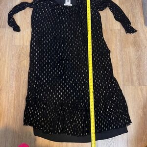 PERUVIAN CONNECTION Glenda Bailey Black Gold Metallic Pleated Maxi Dress L