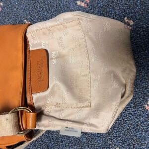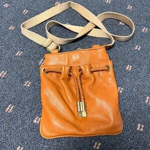 Michael Kors Brown Woodside Leather Canvas Crossbody Handbag Drawstring Small