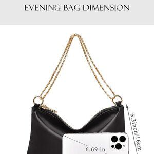 Features: Crafted from smooth, high-quality satin, this rectangular clutch is both soft and sleek. Its unique design allows the center to gently slouch, giving you options to switch between a defined shape and a relaxed, curved look. The spacious interior can hold your phone, mini wallet, keys, cosmetics, and essentials with ease. The detachable metal chain offers multiple carrying styles — as a clutch, shoulder bag, or handbag, perfect for dressing up or down.