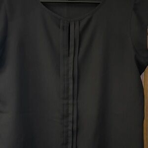 Chic black blouse with a sleek design. Perfect for work or casual wear. 20 inches pit to pit and 26 inches shoulder to hem. Semi sheer.