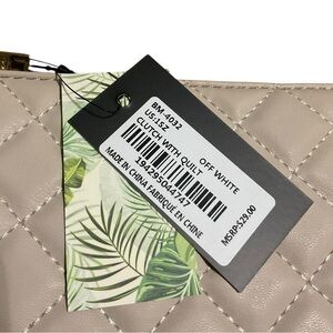 Quilted design. Features a wristlet strap. Gold-tone logo accent. Zip top closure. Interior zip pocket.