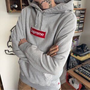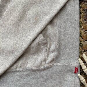 Excellent limited edition heather gray Supreme hoodie with the classic box logo and red tab logo at the bottom left