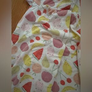 Lightly worn. Fruit print…watermelon, cherry, pear. Size 6-9 mos