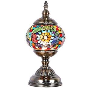 This small decorative mosaic table lamp gives low light that creates warm ambiance for decorating any room.