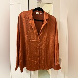 Elegant terracotta blouse with button-up design. Ideal for versatile styling.