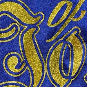 Mid/light weight. Satin fabric with light lining. Gold sparkly print.