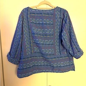 Habitat Clothes to Live In Blue Embroidered Dash Tunic Top Size L Lagenlook