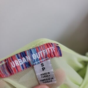 Urban Outfitters Green Mesh Asymmetrical Hem Spaghetti Strap Dress Scoop Neck. Size Small. Good used condition. No stains or holes. Strap to connect two dresses is detached on one side.