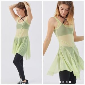 Urban Outfitters Green Mesh Asymmetrical Hem Spaghetti Strap Dress Scoop Neck