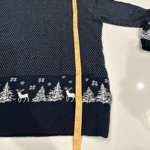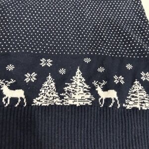 The LL Bean Fair Isle Cotton Cashmere Sweater in Navy Blue is a luxurious and stylish addition to any woman's wardrobe. This small size sweater features a turtleneck neckline and long sleeves, making it perfect for cooler weather. The Fair Isle pattern adds a touch of whimsy with its trees, snowflake, and deer motifs, while the combination of cashmere and cotton ensures a comfortable and warm feel. This pullover sweater from L.L. Bean is not only practical but also a beautiful statement piece.