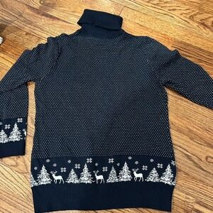 LL Bean Fair Isle Cotton Cashmere Sweater Navy Blue Turtleneck Deer Small 503413