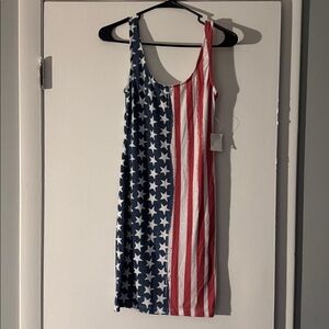 Sleeveless dress with star and stripe pattern. Perfect for casual outings.