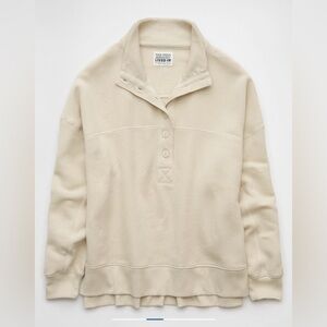 American Eagle Women’s Big Hug Henley Sweatshirt Color Cream Size M