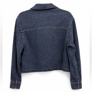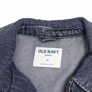Classic Old Navy denim shacket in a versatile medium-to-dark wash. Features a zip-front closure, structured collar, and utility-style chest pockets. The cropped, boxy silhouette makes it perfect for layering over tees, tanks, or sweaters—easy everyday casual or workwear style.
