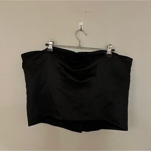 Jaclyn Satin Top from Reformation. It is a strapless, slim fit and cropped top.