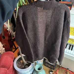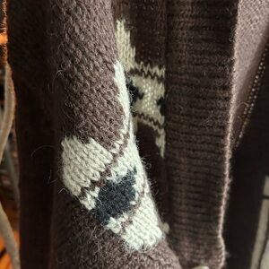 Vintage 60s 70s Grandpa Boho Brown and Cream Cardigan Medium