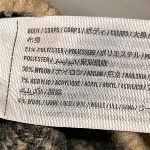 51% Polyester, 36% Nylon, 7% Acrylic, 4% Wool, 2% Elastane