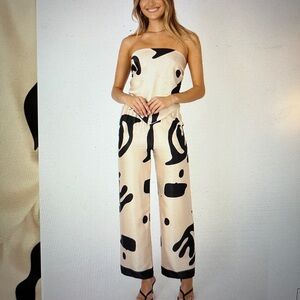 Petal & Pup Mills Tube Top and Pants Set Abstract Black and Cream Jumpsuit