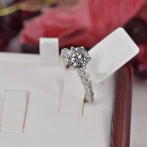 2ct Gray Moissanite Certified Round Brilliant Cut Engagement Ring 925 Sterling