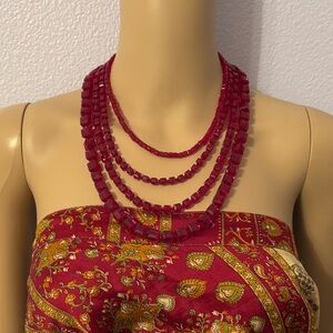 SAACHI Deep Ruby Red Layered Crystal Glass Necklace