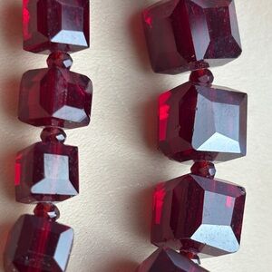 This necklace is gorgeous. The deep rich crimson red color is stunning. Hard to capture the rich hues with the camera. The rich color along with the detail of each of the beads having an extra bead in between for drama shows it’s a quality necklace.