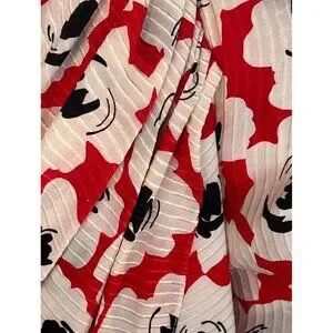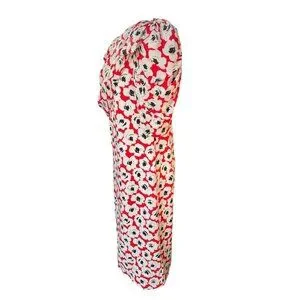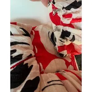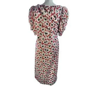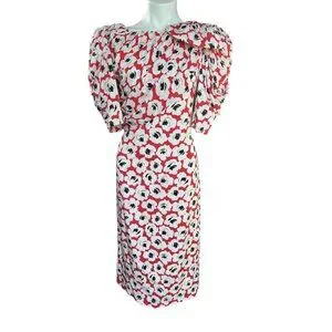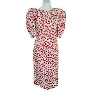 Digna Yero Sakowitz Womens Dress Size 10 Red Blk Wht Puff Sleeves & Draped Yoke