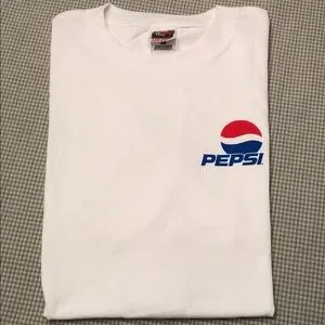 Vintage Pepsi Logo White Short Sleeve Tee Fruit of the Loom Size Large #1035