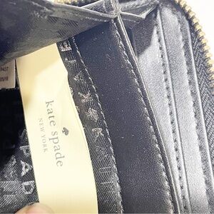 Stylish black wallet. Features leopard and cherry design. Gold zipper detail. Perfect for everyday use.