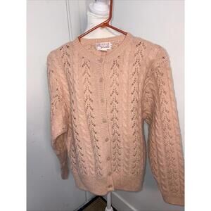 Hingham square Peach Mohair Wool Blend Button Up Medium Cable In