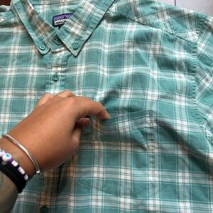 Patagonia Men’s Lightweight Polo Shirt Checkered Sage/Mint Button up Sz XXL