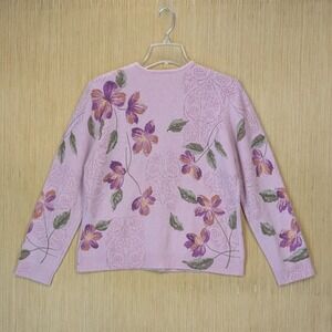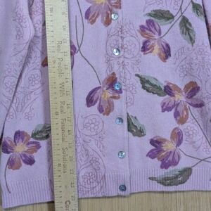 Talbots Cardigan Sweater Womens Large Pink Floral Lambswool Angora Feminine Vtg