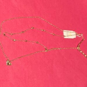 Elegant gold layered necklace featuring a heart pendant. Perfect for adding a touch of sophistication to any outfit.