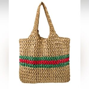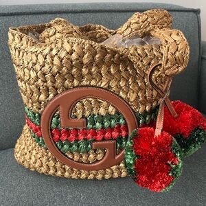 NWOT. COA included. Gucci Interlocking GG Raffia Blondie Tote. Dual shoulder straps. Leather and Pom-Pom accents. Unlined with single interior pocket. She is bigger than one might think. Perfect for the beach 🏖️ ☀️ or an everyday tote!