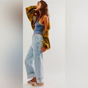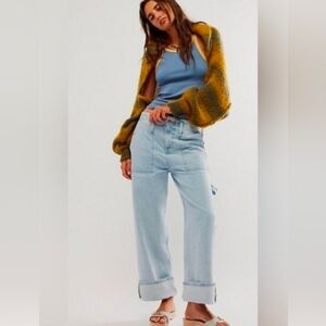 Free People, We The Free, Major Leagues, Jeans, Denim, Wide Leg, Crop, Cuffed, Mid Rise, Light Wash, Light Stone, Size 29, Baggy, Slouchy, Boyfriend Fit, Utility, Carpenter