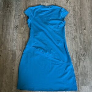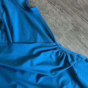 Athleta women faux wrap stretch dress blue S