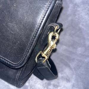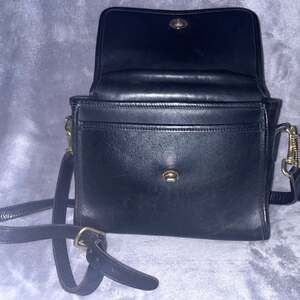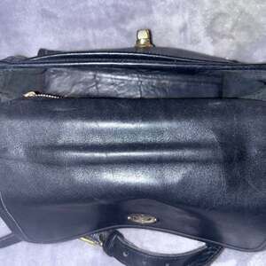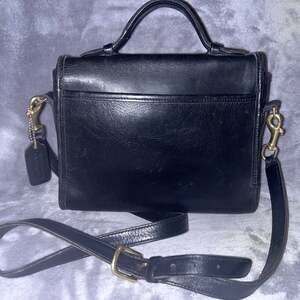 Vintage Coach Court Bag in Black Glovetanned Leather, Style 9870. This iconic silhouette features a top handle and a detachable crossbody strap for versatile wear. Built with durable, thick leather that has developed a unique character over time.
