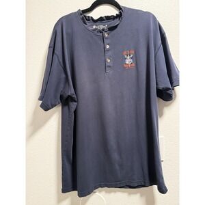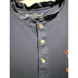 The Big Dogs Motorcycle Live To Ride Ride To Live Navy T Shirt in XL size is a stylish and comfortable shirt for men who love motorcycles. Made from cotton, this short sleeve shirt features a Henley neckline and is designed with a motorcycle theme in mind. The navy blue color adds a touch of ruggedness to the overall look, making it perfect for any rider looking to show off their love for the open road.