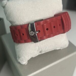 Michele Tahitian Jelly Bean Red & Silver Chrongraph Watch - Perfect Condition