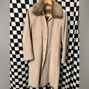 Women's Long Tan Liz Claiborne Suede Trench Coat Leather Trench Coat Jacket