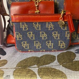 Dooney & Bourke Vintage denim double pocket satchel with matching coin purse and charms plus