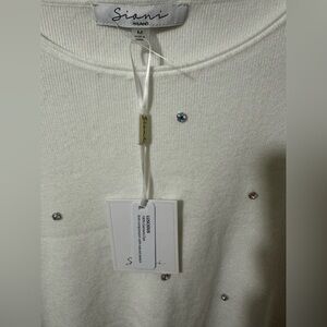 Stylish white sweater adorned with sequins. Perfect for adding a touch of elegance to any outfit.