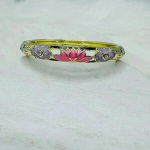 Purple & Pink Flower Enamel Cloisonne Bracelet Bangle