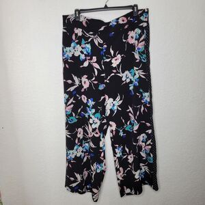 Lane Bryant 22/24 Floral Polka Dot Print Wide Leg Trouser Pants Black Plus Size