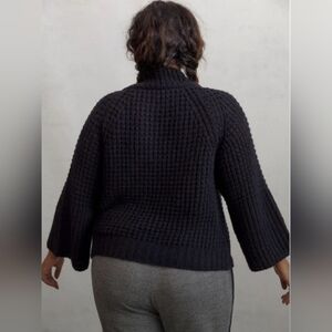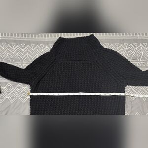 Great condition. Size small. All black knit style sweater. Bell sleeves. Mock neck. Measurements and fabric content listed above in pictures.
