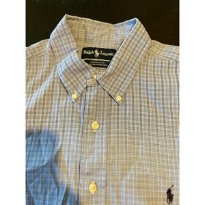 Keywords: Ralph Lauren, button down shirt, long sleeve, plaid shirt, mens shirt, casual shirt, blue shirt, checkered shirt, dress shirt, work shirt, formal shirt